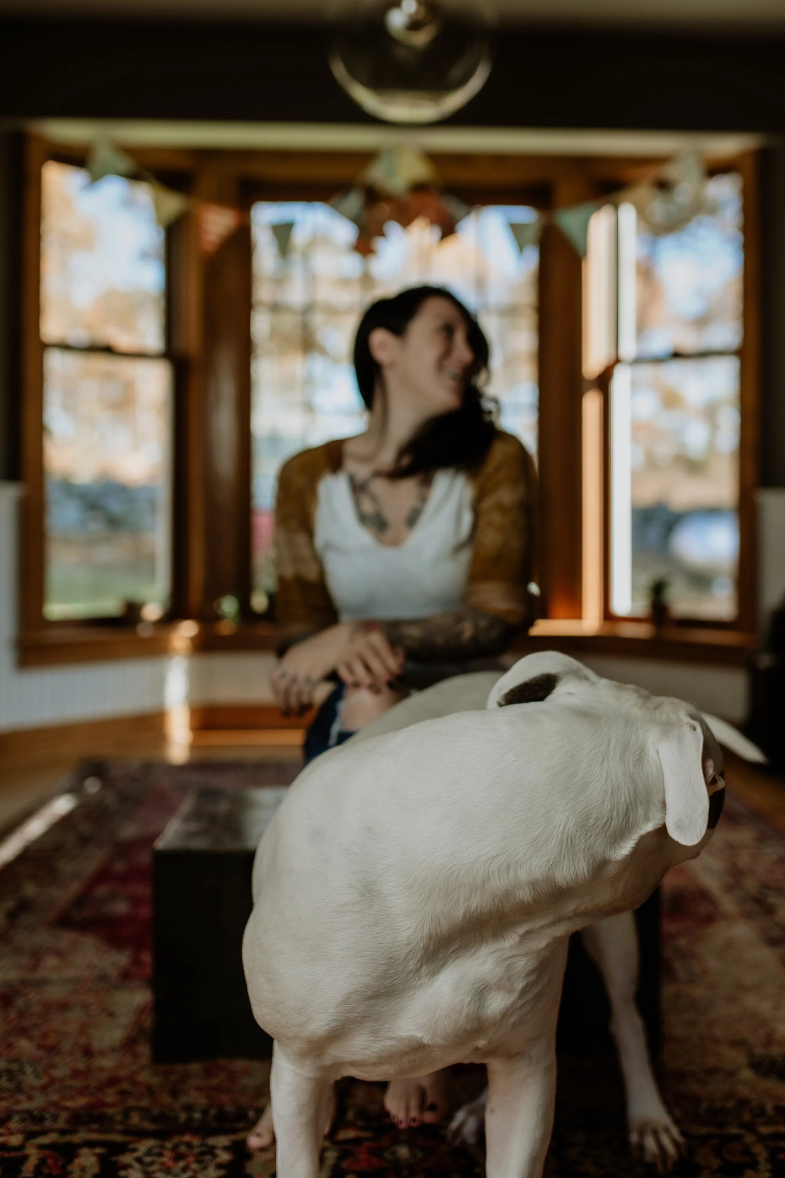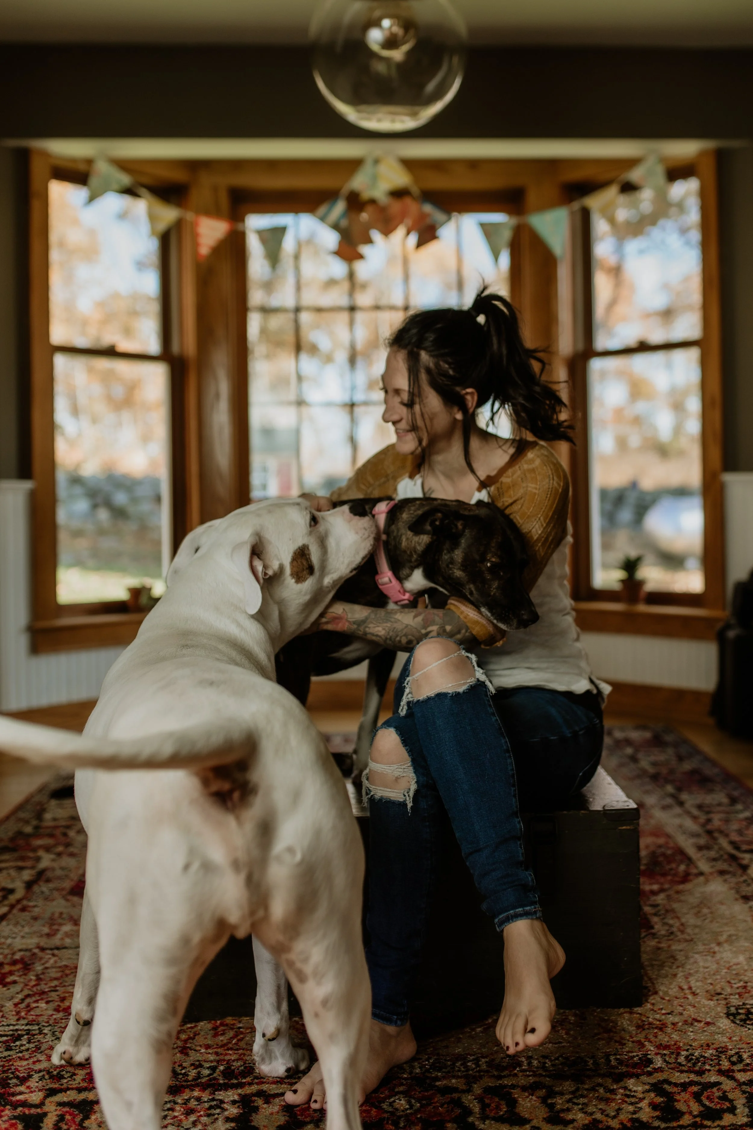 All of these pictures of me are a result of trying to take a “serious headshot” of myself specifically for this page, but my dogs had other plans. Oh well. Honestly, I like the outtakes much better. And if you have dogs, these are probably pretty relatable moments. (Sorry for the uncomfortably close picture of Otis’s butt.)