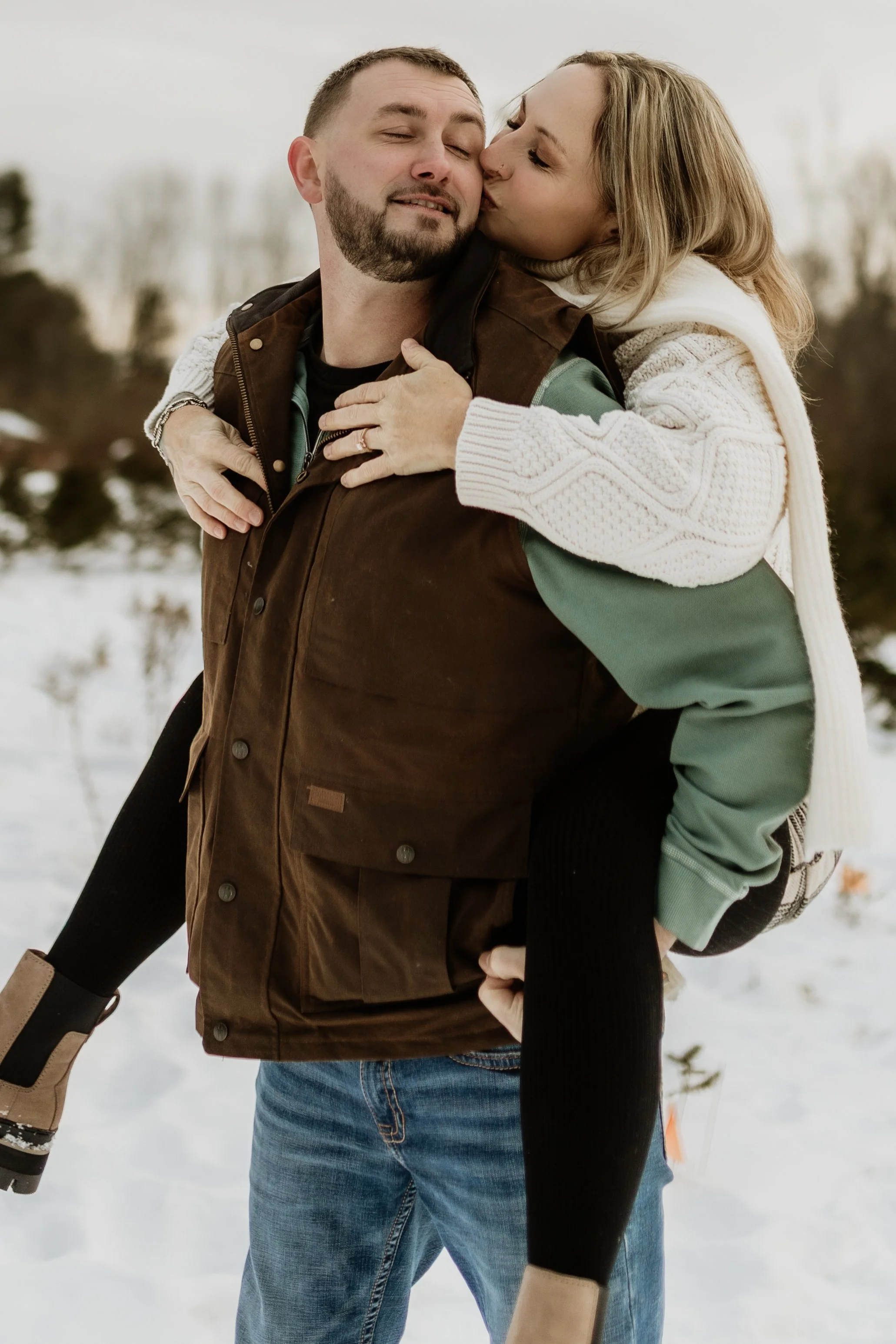 We chatted about their wedding next year while wandering around the farm, which somehow made everything feel even more relaxed. It honestly felt more like hanging out than “doing photos,” which is always the goal. Festive, laid-back, and exactly the kind of session that gets you in the holiday mood without forcing it.